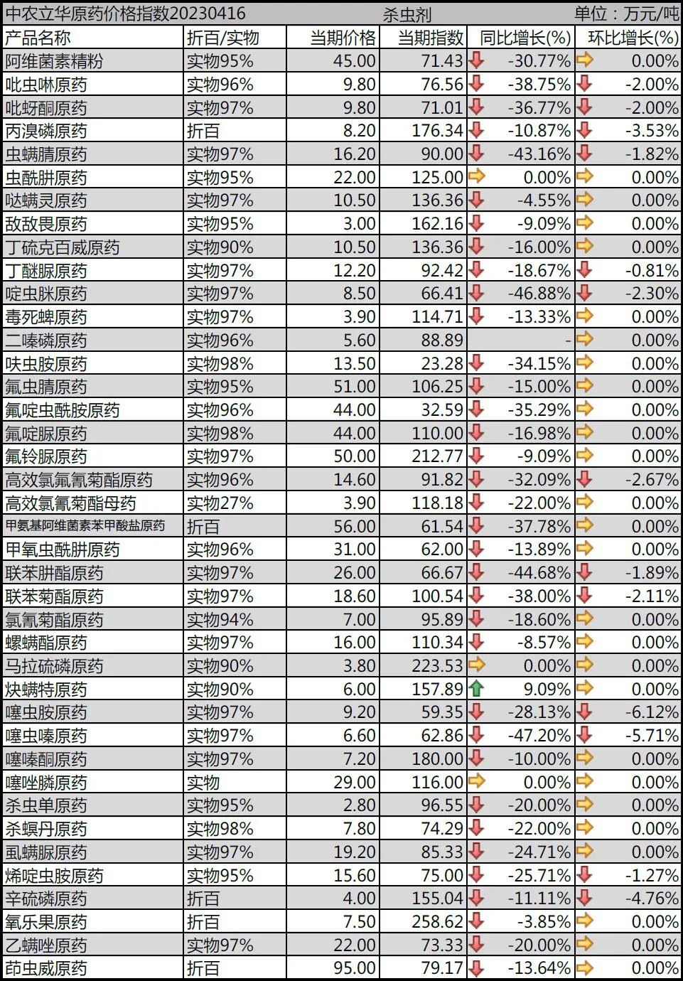 氟啶脲原藥報(bào)到44萬元/噸;氟鈴脲原藥廠家較少,報(bào)價(jià)50萬元/噸;虱螨脲原藥廠家競爭激烈,報(bào)到19.2萬元/噸;乙螨唑原藥市場補(bǔ)貨剛需中,報(bào)價(jià)到22萬元/噸。