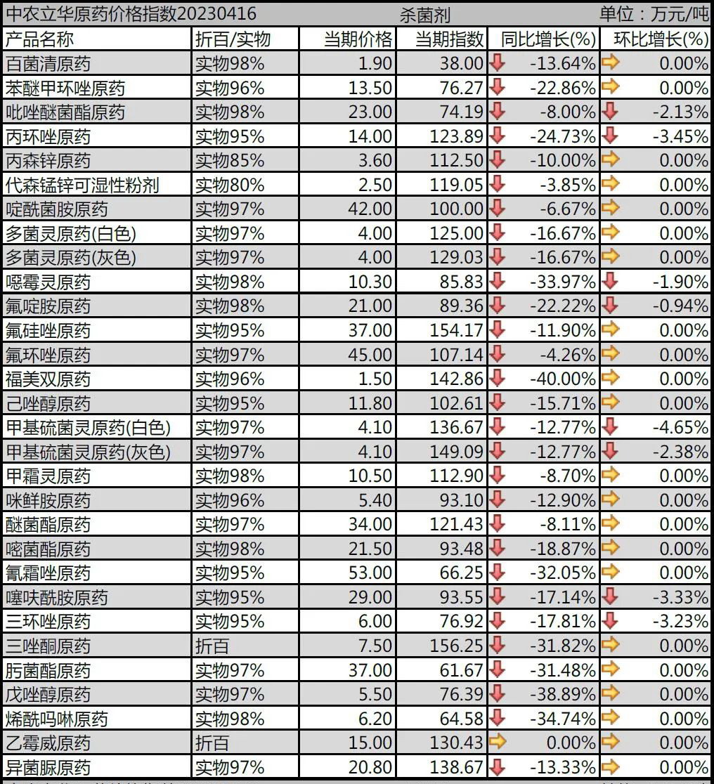 啶酰菌胺原藥報價42萬元/噸,市場貨源緊缺;氰霜唑原藥報價在53萬元/噸;噻呋酰胺原藥價格緩慢回調,小麥用藥接近尾聲,報價到29萬元/噸;烯酰嗎啉原藥價格下跌到低點,開工率降低,廠家報到6.2萬元/噸。