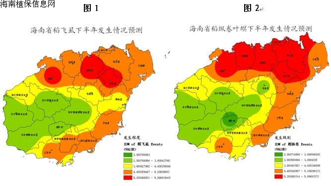 ②、稻縱卷葉螟:預(yù)計中等發(fā)生,發(fā)生面積55萬畝次,主要發(fā)生在東部(文昌、瓊海、萬寧),北部和西北部(海口、定安、澄邁、儋州、)發(fā)生情況預(yù)測如圖2。