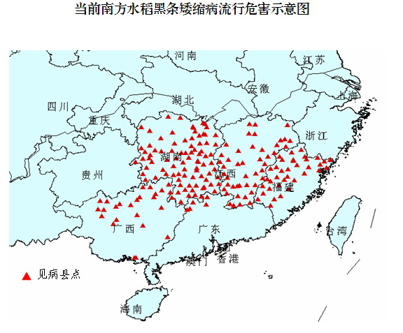 預(yù)計(jì)下階段南方水稻黑條矮縮病在華南、江南稻區(qū),尤其在晚稻上的見病范圍、危害程度將進(jìn)一步擴(kuò)大與加重,并可能擴(kuò)展至長(zhǎng)江中游稻區(qū),廣東、廣西、福建、湖南、江西、海南出現(xiàn)暴發(fā)危害的可能很大。