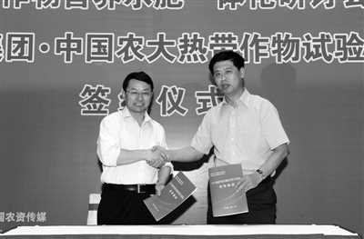 四月二十四日,天脊集團(tuán)與中國(guó)農(nóng)業(yè)大學(xué)在海南三亞簽訂熱帶作物營(yíng)養(yǎng)水肥一體化試驗(yàn)協(xié)議。天脊集團(tuán)與科研院所聯(lián)合,旨在發(fā)揮國(guó)有大型農(nóng)資生產(chǎn)企業(yè)與知名農(nóng)業(yè)院校的示范作用,為華南農(nóng)戶增產(chǎn)增收創(chuàng)造條件。