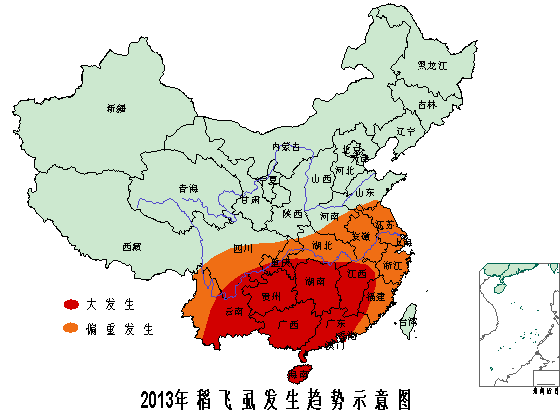 據(jù)全國農(nóng)業(yè)技術(shù)推廣服務(wù)中心冬前組織科研、教學(xué)和推廣單位專家會商結(jié)果,結(jié)合水稻病蟲基數(shù)、栽培制度、冬春季氣候條件等因素綜合分析,預(yù)計2013年水稻病蟲害將呈偏重發(fā)生態(tài)勢,發(fā)生面積15.2億畝次,將對3.5億畝水稻生產(chǎn)構(gòu)成威脅。其中,蟲害以稻飛虱、稻縱卷葉螟和二化螟為主,發(fā)生面積10.5億畝次;病害以為紋枯病、稻瘟病、稻曲病、病毒病為主,發(fā)生面積4.7億畝。