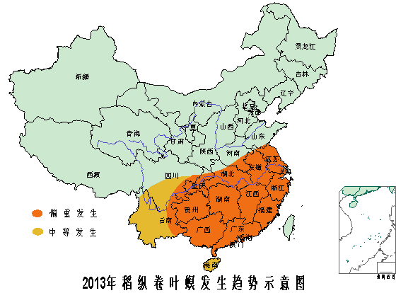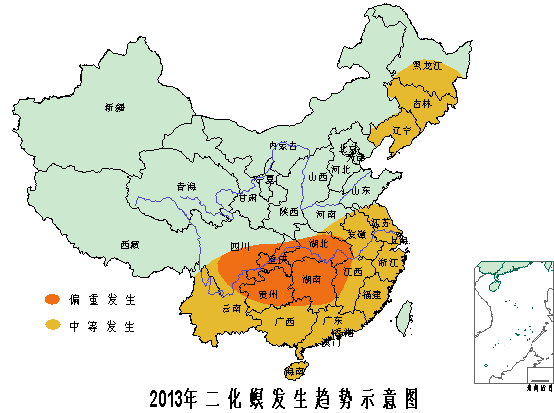 (三)氣象條件。據(jù)國家氣候中心監(jiān)測,2012年入冬以來,我國華南南部、西南南部和境外蟲源地越南北部、泰緬北部“兩遷”害蟲越冬稻區(qū)平均溫度較常年偏高1-2℃,降水量前冬較常年正常或偏少2-5成,但后冬境外越南北部、泰緬北部“兩遷”害蟲越冬稻區(qū)明顯偏多,總體大氣熱量和水分條件對“兩遷”害蟲的越冬存活和繁殖有利;但江南西北部、長江中下游及其以北稻區(qū)平均溫度普遍較常年偏低,東北稻區(qū)局部偏低4℃以上,不利于螟蟲越冬。據(jù)預(yù)測,2013年春季,我國南方大部稻區(qū)降水量正;蜉^常年偏少1-2成,一定程度上不利于“兩遷”害蟲的遷入為害,但西南西部稻區(qū)降雨偏多,且全國稻區(qū)溫度正;蜉^常年偏高1-2℃,加之受西太平洋副高強度偏強、位置偏西偏北影響,天氣條件總體仍有利于“兩遷”害蟲的遷入和繁殖,將導(dǎo)致西南、華南和江南稻區(qū)“兩遷”害蟲遷入期提前,華南南部、西南南部、江南稻區(qū)局部遷入量偏大;全國大部稻區(qū)的溫度偏高,降水偏少,對螟蟲的發(fā)生繁殖為害十分有利,但降水偏少不利于水稻病害的流行為害。