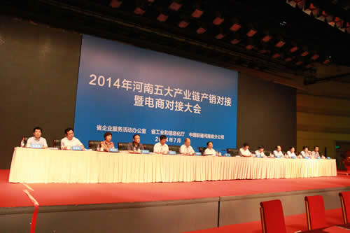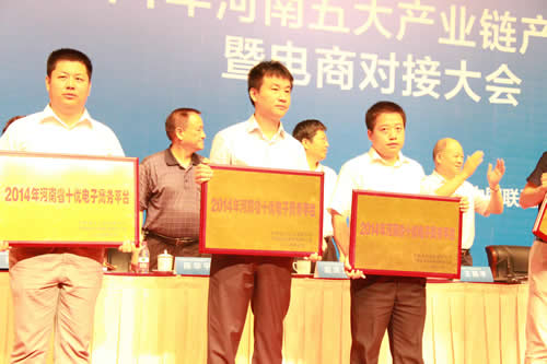 2014年7月3日,由河南省工業(yè)和信息化廳組織開(kāi)展的2014年五大產(chǎn)業(yè)鏈產(chǎn)銷(xiāo)對(duì)接暨電商對(duì)接大會(huì)在鄭州會(huì)展中心隆重召開(kāi),河南省副省長(zhǎng)李亞、省政府及各地市相關(guān)部門(mén)領(lǐng)導(dǎo)出席會(huì)議,會(huì)議由省政府黨組成員路國(guó)賢主持,省工信廳廳長(zhǎng)王照平首先對(duì)產(chǎn)銷(xiāo)對(duì)接有關(guān)情況進(jìn)行通報(bào)并發(fā)布前期對(duì)接成果,李亞副省長(zhǎng)現(xiàn)場(chǎng)啟動(dòng)了“十百千萬(wàn)”網(wǎng)上系列促銷(xiāo)工程,并對(duì)入選2014年河南省十優(yōu)電子商務(wù)平臺(tái)的企業(yè)予以授牌表彰,作為國(guó)內(nèi)農(nóng)資行業(yè)電子商務(wù)服務(wù)平臺(tái)的領(lǐng)潮者,農(nóng)資網(wǎng)成功入選2014年河南省十優(yōu)電子商務(wù)平臺(tái)。